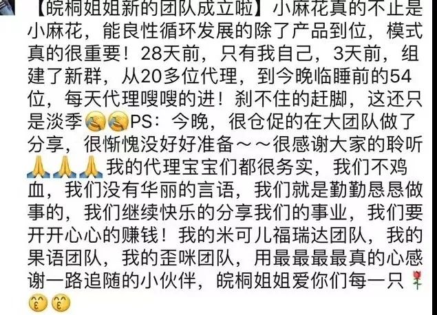 成为歪咪代理后,开始发圈做推广,所幸的是之前有过做微商的基础,线上有一定的人脉,加上民以食为天,所以进行的非常顺利,带领着一直跟随我信任我的伙伴们仅靠线上业绩赚取收入。
