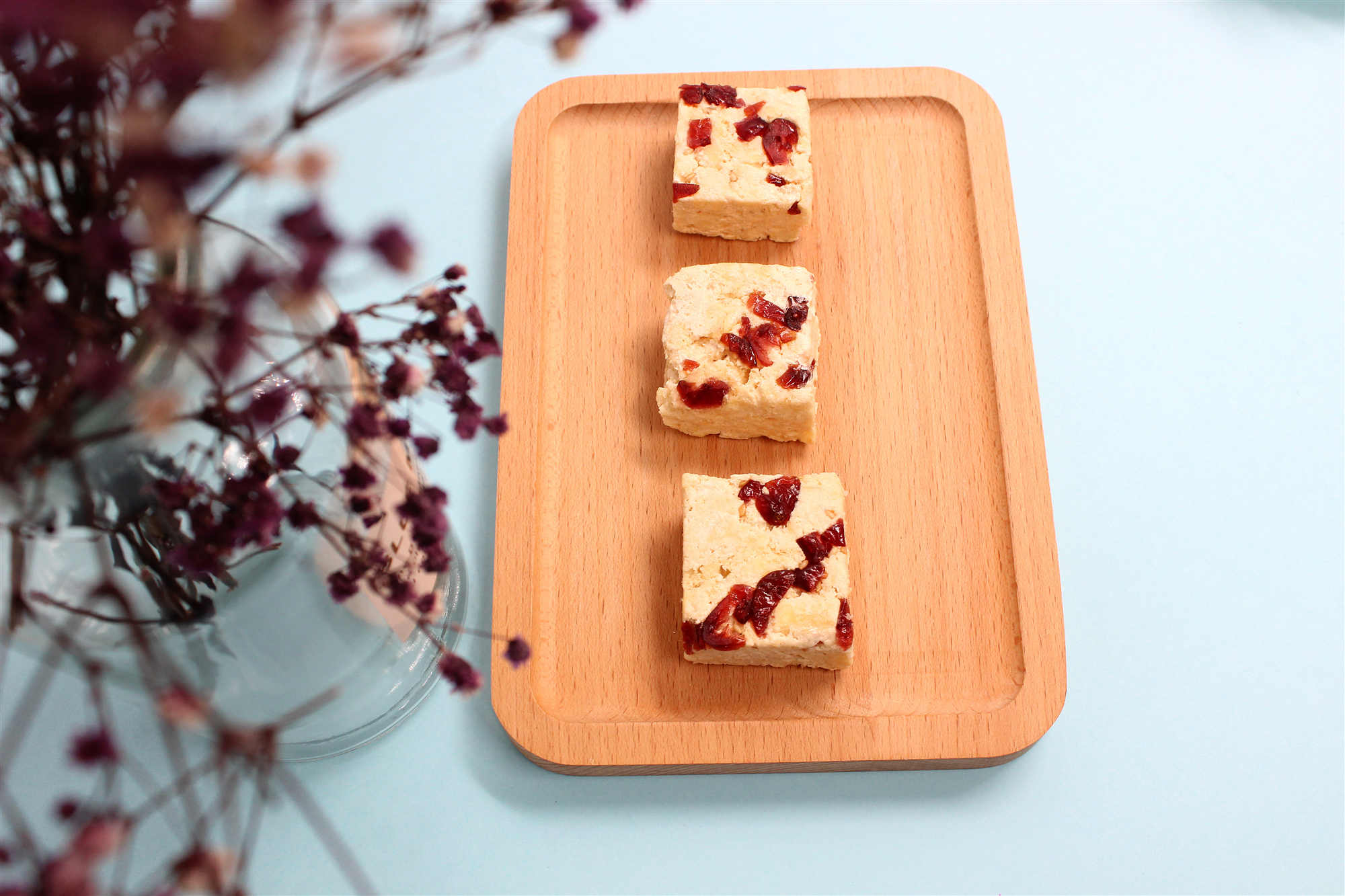 不仅有传统沙琪玛的甜美,还有蔓越莓新鲜爽口的味道。